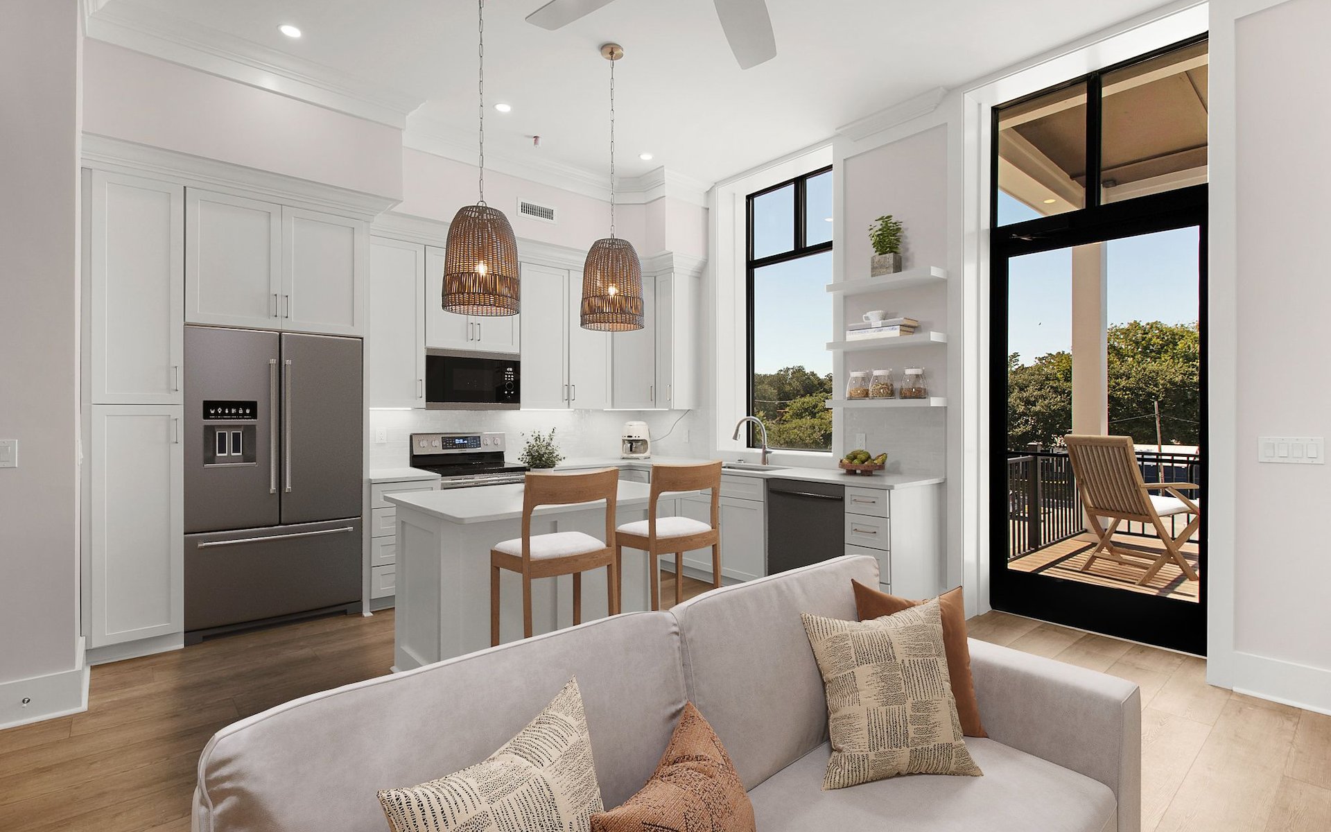 A community pool, golf cart parking, bike parking and grilling area. The Mulberry community is also home to retail/business space and a gorgeous event center & pond.